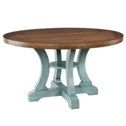 5pc Lexin Round Dining Table Set Antique Light Blue/Dark Oak – MiBasics