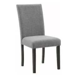 Style the dining room with a chic touch. This dining set is a luxurious design with a white faux marble tabletop. The four light gray linen upholstered chairs are Parsons style accentuated by glam nailhead trim.