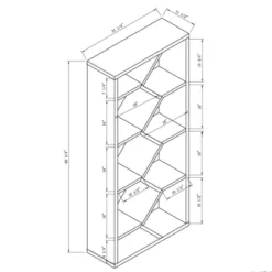 This modern bookcase features an interesting geometric pattern. Highlights include plenty of storage for books and other display items, in varying shapes, heights and widths for visual interest and convenience. A tall piece, finished on both sides, makes this a perfect choice to use as a room divider and comes in a selection of gorgeous finishes that’s perfect for your contemporary living room, bedroom or home office.