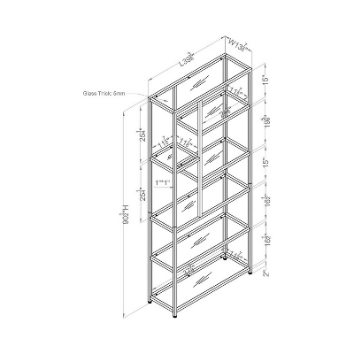 90.5″ Suncroft Glass Shelf Accent Bookcase – MiBasics