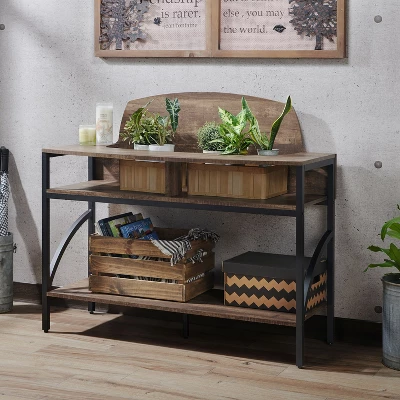 Playing on a soft farmhouse motif with a functional profile, this classic table offers a perfect addition to casual decor. Bring the beauty of nature indoors with this Camie Console Table from miBasics. This console table is great for the garden lover who wants to display plants inside, or a kitchen buffet space in need of a venue to showcase ceramics and serveware. The lower shelves provide additional storage options for an all-around great design.
