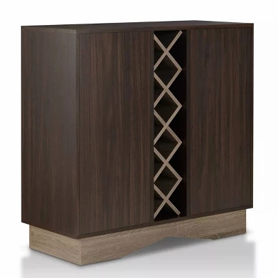 This multi-functional Wine Cabinet is like having a butler in your home. It’s that all-important addition to your dining room that acts as server, decorative display case, and all-important storage. This versatile wine cabinet is crafted from particle board and veneers with a dual tone finish of wenge finish with beautiful wood grain inspired details. It features a double door cabinet with adjustable shelving and a middle rack that can hold your favorite wines. Stock it up with plates, glassware and wines in the dining room for impromptu dinner gatherings.