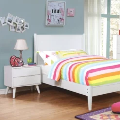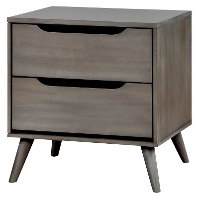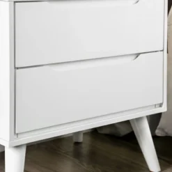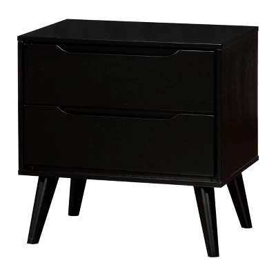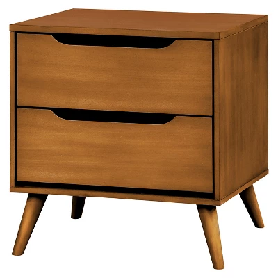 Invigorate your bedroom decor with this Dawna Mid-Century Modern Nightstand from Sun & Pine. Featuring a clean rectangular shape and wood-finish exterior, this rectangle nightstand is supported by charming angled, tapered legs for mid-century style and stability. Built-in drawers with recessed handles offer plenty of space for books, magazines and other essentials – just place this nightstand alongside your coordinating bed or sofa to bring an understated update to your master or guest bedroom, or add it as an end table to a living space.