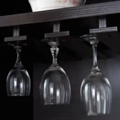 A layered structure gives this mid-Century modern buffet server a wonderful look and varied storage options. Sitting on canted feet, the unique buffet submits multiple open facades for arranging a variety of cocktails. Wine and stemware racks tend drinks for jubilant events, while cupboards with adjustable shelves closet seasonal serving platters and bowls.