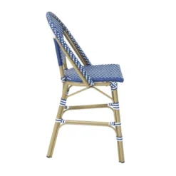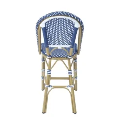 Entertain friends and family with a patio getaway. This ocean blue and white wicker-designed round counter height dining set is fit for your calm outdoor experience. The hourglass natural tone aluminum frame and plastic material tabletop are weather resistant. Water and UV resilience give this patio table set a long life for countless parties.