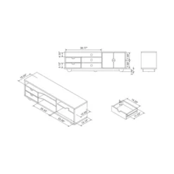 Add mid-century style to your living room with this 63 in. TV stand. Three open shelves are perfect for housing media and game components while two drawers, with unique cut-out handles, provide ample storage space for movies and games. Crafted of sturdy MDF materials with wood inspired rich finish, this console will accommodate most flat panel TVs up to 70 in. Showcase this simple yet sophisticated console in your living room, great room or dining room and it will become a favorite for years to come.