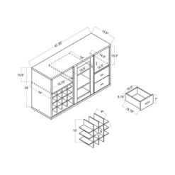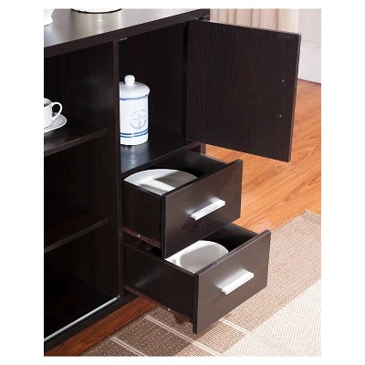 The Mellie Sliding Door Buffet Server from Acme gives you a smart storage solution that’s easy on the eyes. This streamlined sideboard keeps dinnerware, stemware, table linens and much more close to your dining area. The sideboard features open shelving for larger pieces, with drawers for small accessories. A 16-bottle wine rack is perfect for keeping a selection of your favorite close at hand. Racks for stemware keep glasses protected and offer a stylish touch.